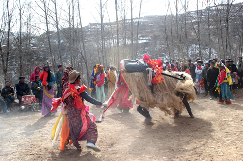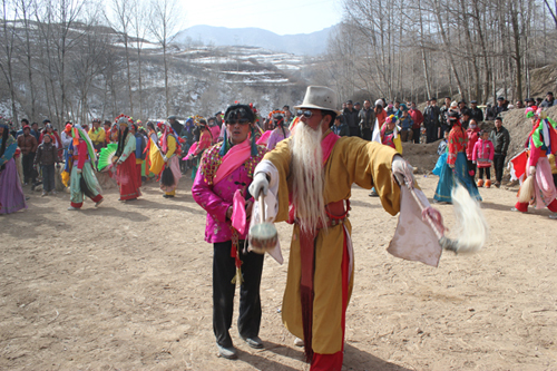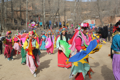 今年春节,正月初三刚过,民和回族土族自治县西沟乡张家庄村迎来首场社火演出,在沟岔阳山的一处旱场里,彩旗飘扬,锣鼓震天,土气十足的社火表演给山沟沟里的蛇年春节增添更多喜庆,也当地广大群众送来了一道的文化大餐,让农村的年味儿更浓郁。石延寿 摄