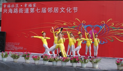 兴海路邻居文化节成功举办了8届,已成为一个文化品牌,文艺演出、厨艺比拼、体育竞技、才艺展示等,通过追求节庆内容形式不断推陈创新,无不体现出区域性节庆文化的积淀,更是促进了邻里之间的联系和友谊。尤其是绘画、书法、经典手工艺品制作等,将传统文化有机融合到现代生活中,增强了社区传统文化底蕴。与此同时,每年评选表彰的由广大群众评选出来的“好邻居”、“孝顺儿女”、“身边的好人”等,更是有效传播了当代先进价值观,可以说,邻居文化节就是一个传播正能量的群众文化阵地。