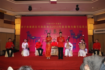 今年1月13日,新春的脚步越来越近,兴海路地区的老百姓再次迎来一年一度的迎春文化盛宴,共同感受“湟音茶宴”浓浓的乡土气息,共同鉴赏地方戏曲悠悠的民族韵味。舞蹈《欢乐的日子》、青海贤孝《面食会》、方言小品《半夜猫叫》等节目让观众大饱眼福。
