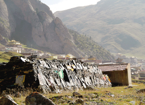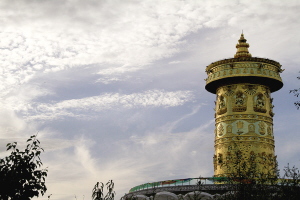 秋季的夏拉草原,又是一番撩人的景致和情韵。凉风细雨,草原愈加宁静和圣洁,犹如产后的母亲,安卧在长天之下,高山之上。风拂动彩色的经幡,向四处传递着敬天畏地祈求平安和谐的神喻。经幡,就是草原灵魂永远张扬的旗帜。我看见一位老人静坐在牧帐前,转动玛尼经轮,那被草原风吹皱的黝黑的脸上流淌着平静安详的光辉。也许,她在祈祷家人平安、牛羊平安,祈祷灵魂平安。