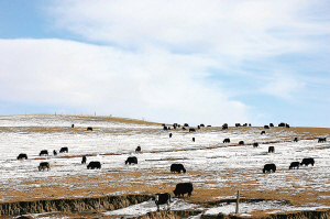 吉祥的草原,吉祥的家园。走进路旁一家新建的牧家乐,几头牦牛在院中悠闲地吃草,偶尔抬头望望我们这些陌生的来客。东家热情邀请我们到帐房里喝茶。他说,这几年,青海湖旅游越来越火,顺便来看夏拉草原的游客日益增多,我就开了个牧家乐,特别是夏季,生意还不错哩!