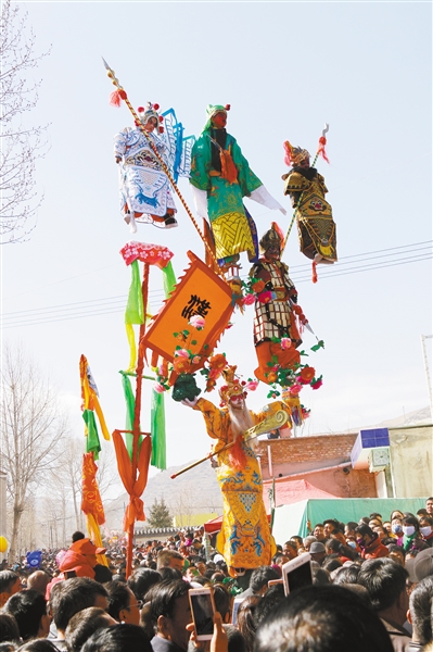 在民间艺术中,千户营高台称得上是一朵盛开在民间的艺术奇葩。这种来自江南,生长于河湟地区的空中造型艺术,受到当地文化养分的滋养,形成了具有浓郁地方风情、民族特色的民俗艺术,其历史悠久,传承绵长,不仅丰富了当地群众的文化生活,增添了浓郁的文化气息,也为传播中国丰富灿烂的文化做出了贡献。在河湟地区成为一面璀璨夺目的民间文化旗帜,在省内外具有广泛的影响。(郭成良)