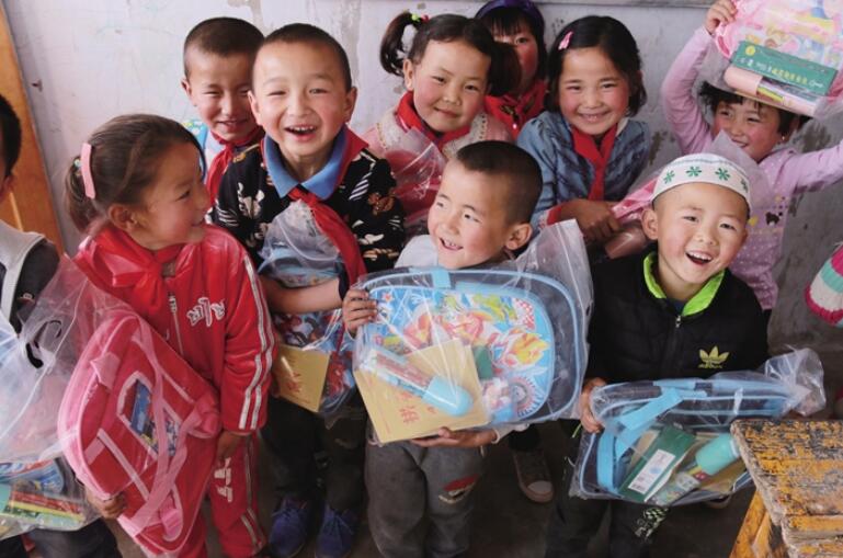 近日,循化县供电公司为循化县查汗都斯乡白庄村教学点的31名学前班、一年级的学生送去了价值2800元的学习用品。图为收到学习用品欢呼雀跃的孩子们。记者陈郁摄