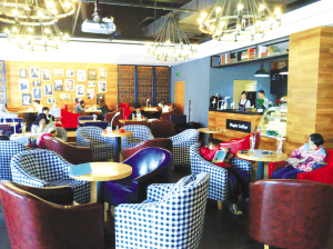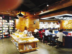 我们书店里有供顾客阅读的区域,还有咖啡厅,吸引了很多年轻人光顾,在这种被图书环绕的环境中,伴着悠扬的轻音乐和醇香的咖啡味阅读,有格调也有气质。
