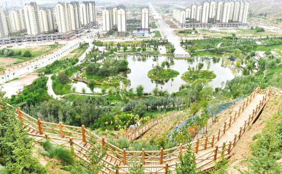 为建设生态宜居城市,近两年乐都区加快推进城市生态景观工程,重点打造湟水滨河城市景观、蚂蚁山公园等景观风貌,形成绿河谷、绿屏障和有机分布的多层级城市绿化系统,进塑造山、水、人、城相融的魅力城市,展现出一副“水在城内、山在城中、人在绿中”的美丽生态画卷。图为正在升级改造中的蚂蚁山公园一角。黄灵燕 摄