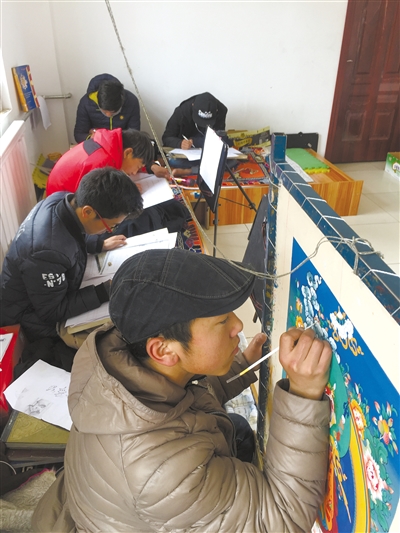 贫困户在班玛县扶贫产业学习唐卡技艺