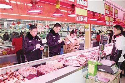 “节前,我们全面加强了入场销售检查工作,禁止商户从疫区购进生猪及其制品,对场区内所有猪肉经营户、猪肉来源地、索票索证、白条肉进货及销售价格、进场量等相关情况,每日安排专人进行逐户实名登记检查。”赵琳说。
