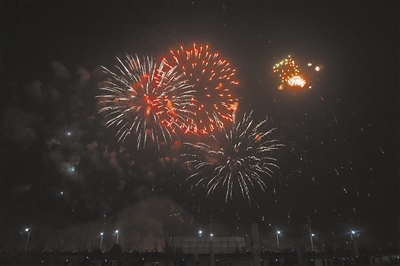 元宵节的焰火照亮乐都夜空。(赵睿 摄)