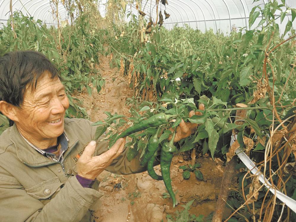 走进村民杨永启承包的两座塑料温棚,棚内绿意葱葱、皮薄肉厚、辣味适中、口感绝佳的乐都“猪大肠”辣椒,经过十多茬的采摘,依然挂满枝头,是省内外餐桌上一道久负盛名的绿色无公害蔬菜。
