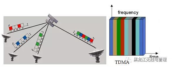 将卫星转发器的工作时间分割成周期性的互不重叠的 时隙(每个时隙也称为分帧,一个周期称为一帧), 再分配给各站使用。任何时候都只有一个站发出的信号通过转发器,转发器始终处于单载波工作状态。