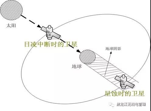 日凌”与“星蚀”:同步卫星在春分和秋分前后,存在着星蚀(卫星进入 地球的阴影区)和日凌中断(卫星处于太阳和地球之 间,受强大的太阳噪声影响而使通信中断)现象。