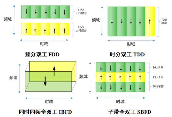 子带全双工SBFD(SubBand non-overlapping Full Duplex)是基站在同一个频谱内的不同子带上分别同时进行发送和接收,结合了TDD和FDD的优势,无需对称频谱资源,同时可以降低传输等待时延和提升上行覆盖性能。相比同时同频全双工,子带全双工无法实现频谱效率的倍增,但是上下行子带的频率隔离降低了自干扰消除的难度,子带全双工是迈向同时同频全双工的关键一步。