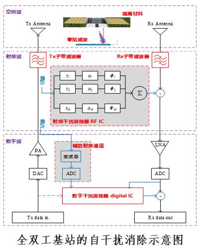 同时同频全双工IBFD(InBand Full Duplex)是指在同一个频谱上同时进行发送和接收,兼具FDD和TDD的优势,理论上频谱效率可以翻倍,但是会引入额外的自干扰(即基站自身发送信号对自身接收信号的干扰)。以同时同频全双工基站为例,由于基站的自干扰远强于接收到的终端上行信号,所以基站需要具备极强的自干扰消除能力。