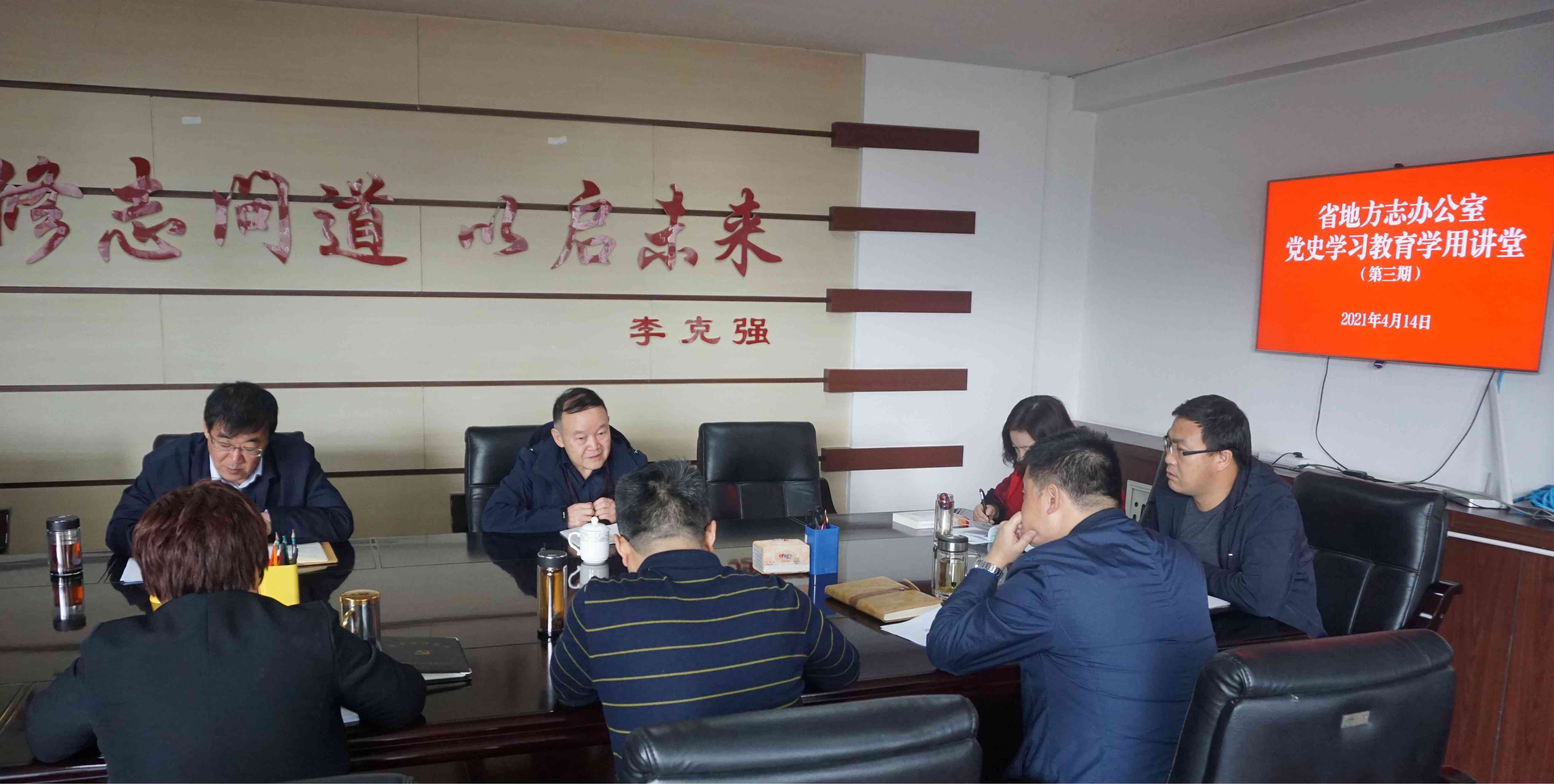 按照党史学习教育“强本领防风险、应对新挑战”专题安排,4月14日,省地方志办公室紧密结合志鉴编纂要严把“五关”(政治关、史实关、体例关、文字关、出版关)要求,举办第三期党史学习教育学用讲堂,邀请省地方志办公室退休干部、原副巡视员李泰年作了题为《怎样把好志鉴编纂中的政治关》的讲课辅导。主任杨松义主持会议,全体干部职工参加。