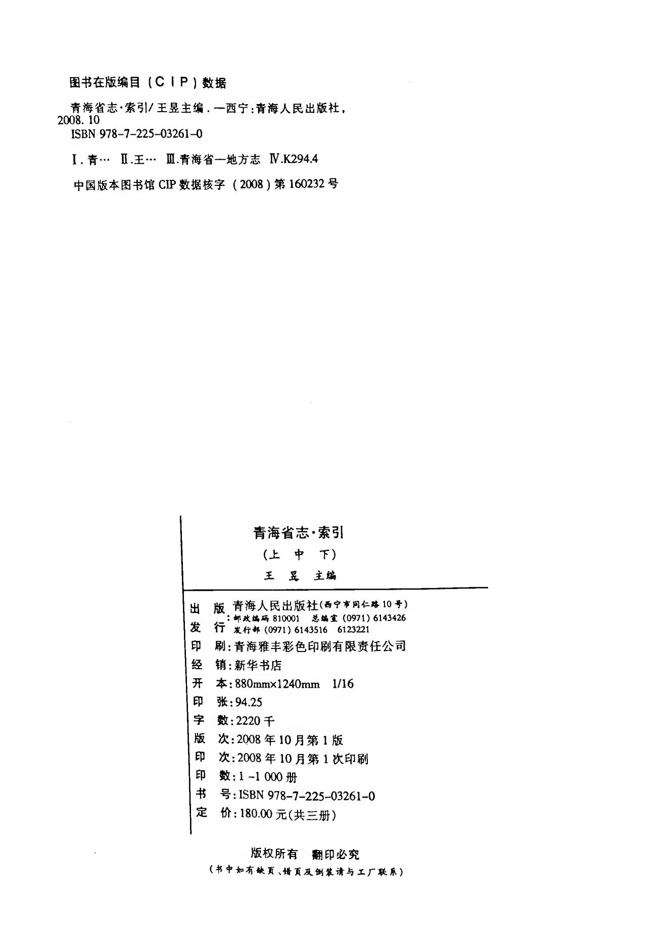 青海省志索引中册