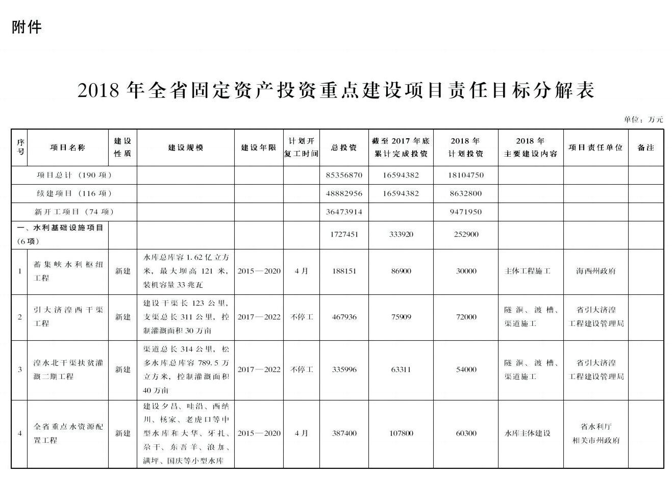 附件:2018年全省固定资产投资重点建设项目责任目标分解表