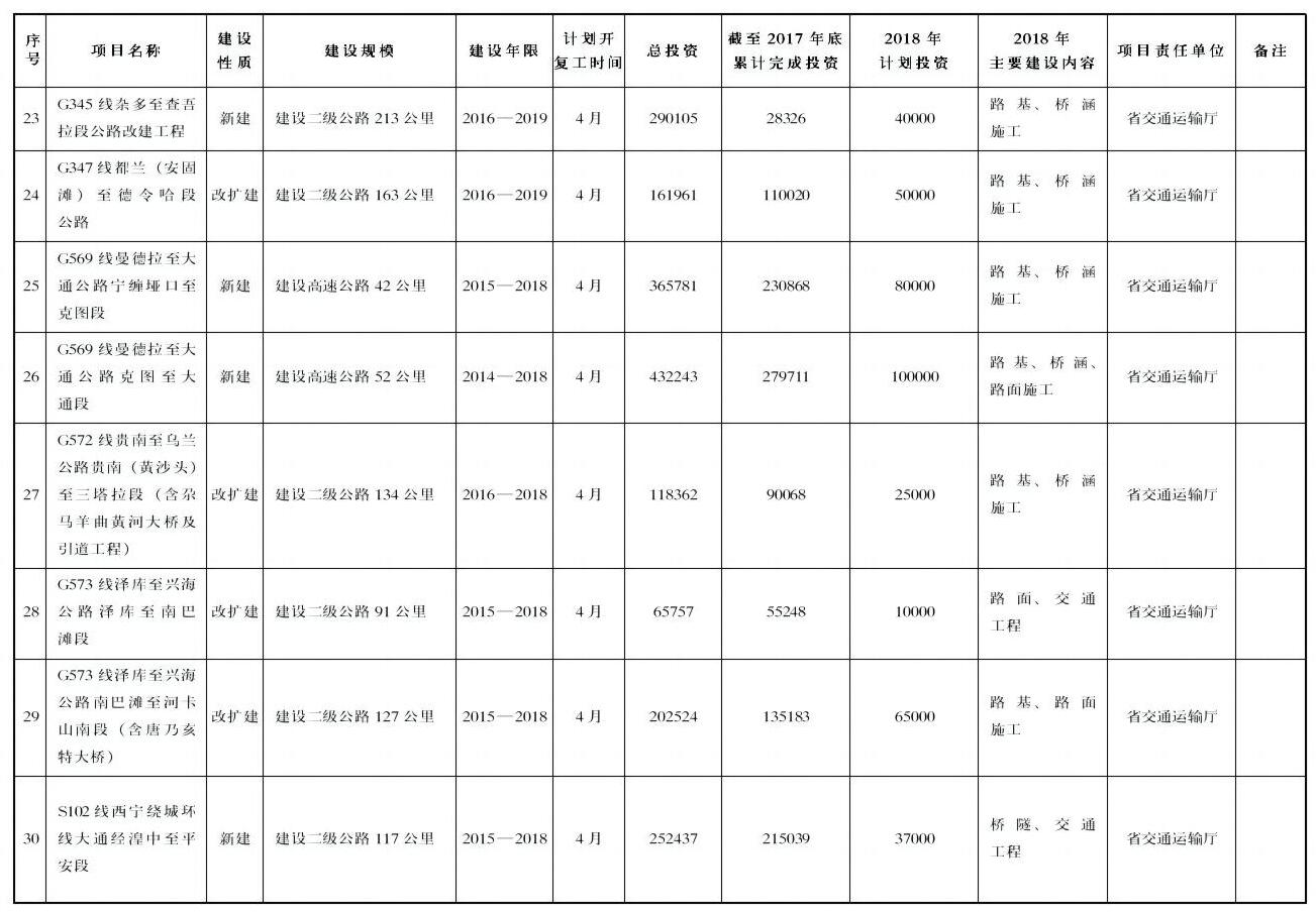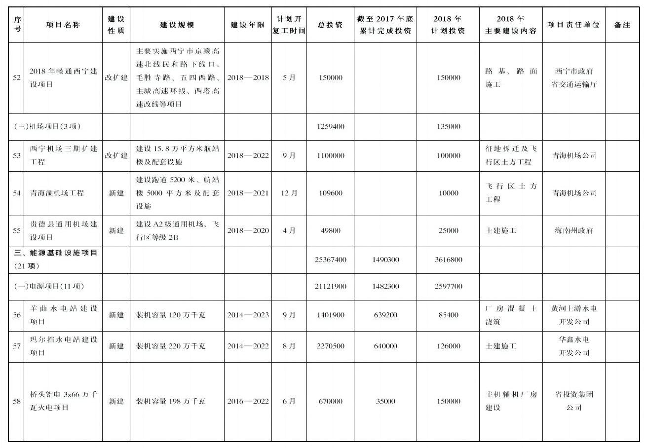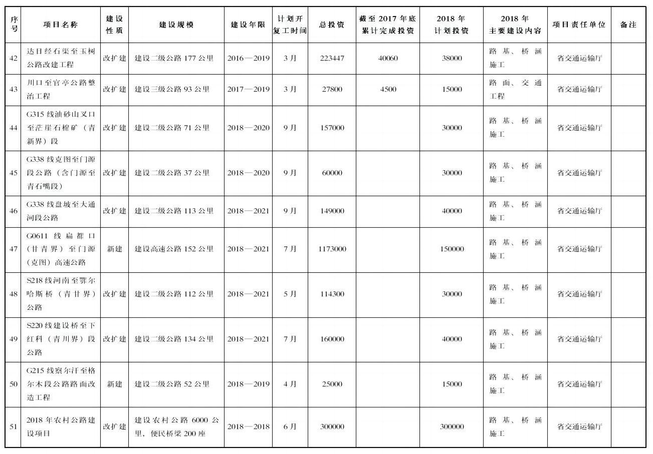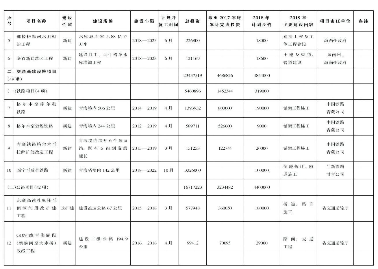 ——综合交通项目49项,年度计划完成投资485.4亿元。主要包括格敦铁路、西成铁路、京藏高速扎麻隆至倒淌河改扩建、西宁机场三期扩建、青海湖机场等项目。