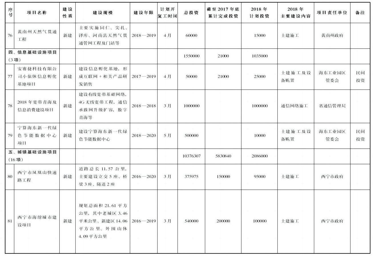——城镇基础设施项目16项,年度计划完成投资208.6亿元。主要包括西宁市、海东市地下综合管廊,藏区城镇基础设施等项目。