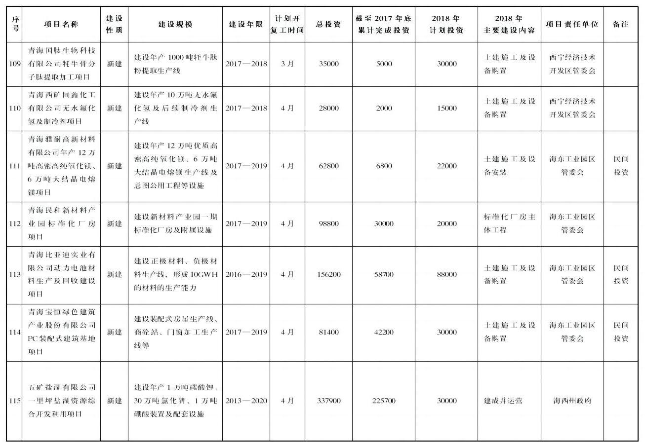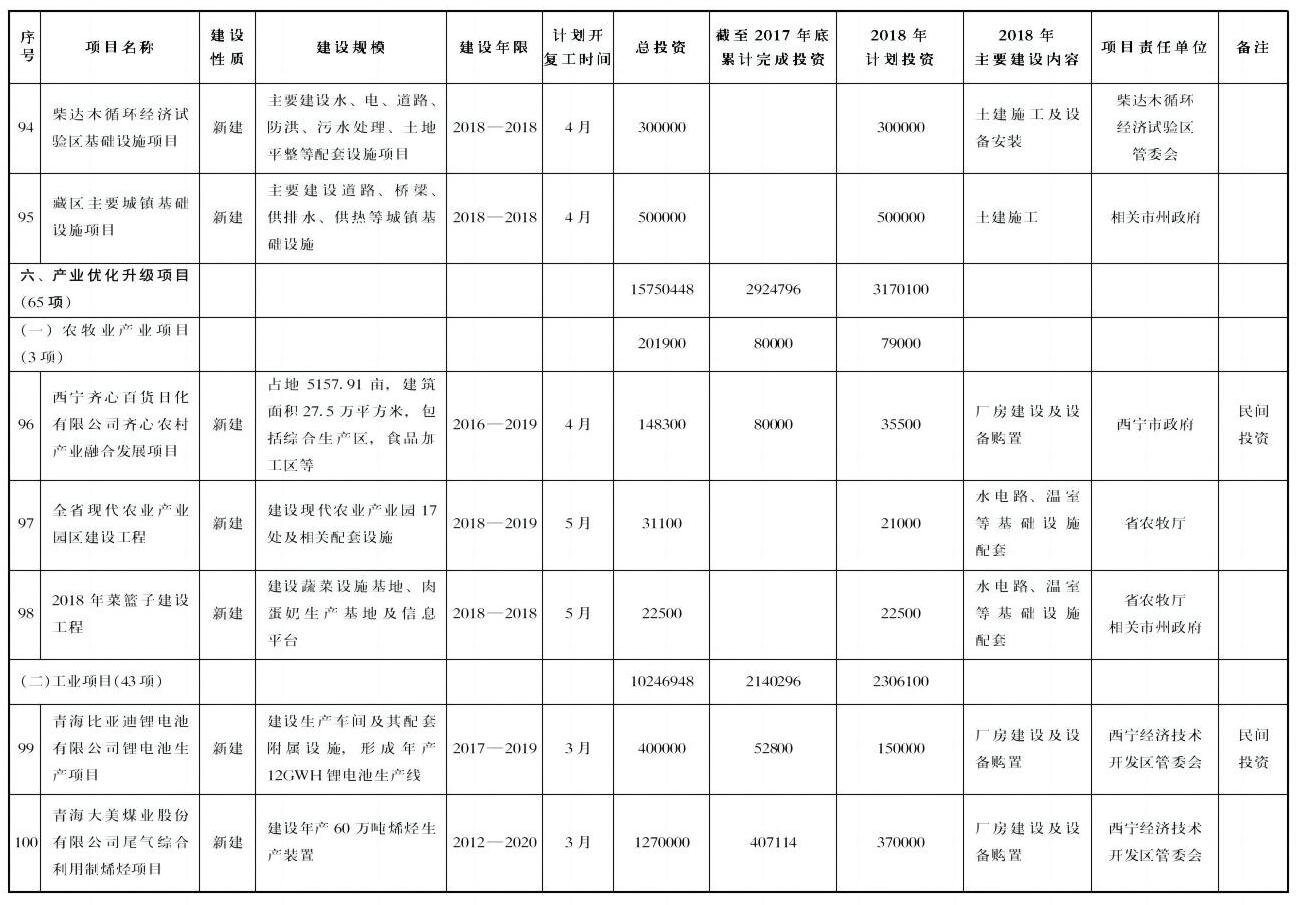 ——产业优化升级项目65项,年度计划完成投资317亿元。主要包括煤制烯烃、比亚迪锂电池、盐湖资源综合开发利用、丝绸之路国际物流中心、茶卡盐湖景区等项目。