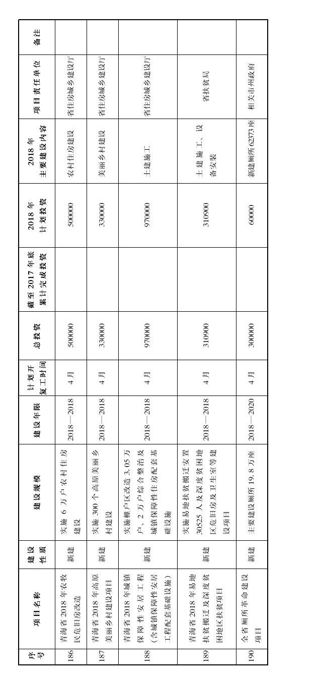 ——民生改善项目20项,年度计划完成投资270.4亿元。主要包括“全面改薄”、省卫校新校区、易地扶贫搬迁、深度扶贫、美丽乡村、城乡保障性住房、厕所革命等项目。