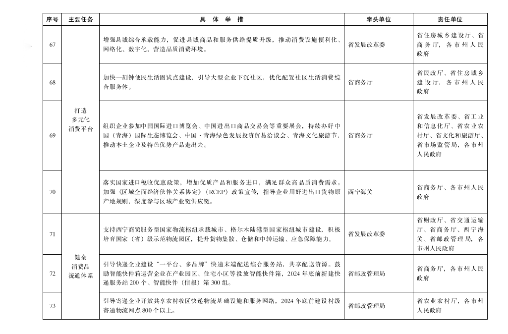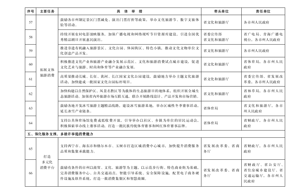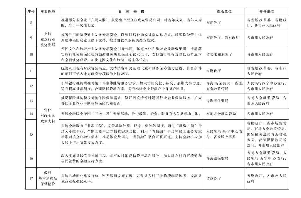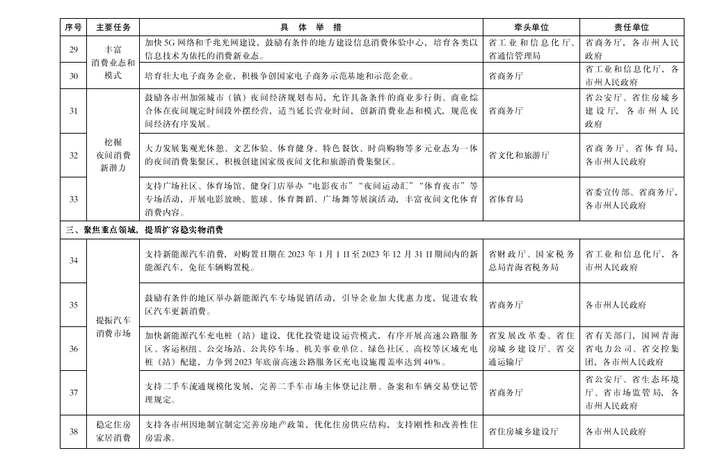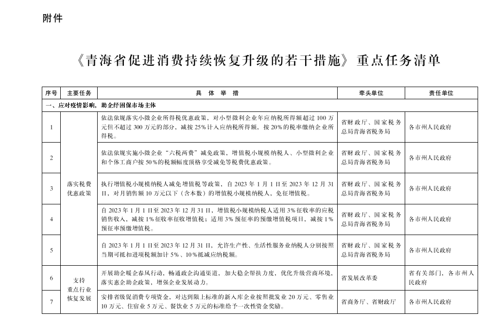 附件:《青海省促进消费持续恢复升级的若干措施》重点任务清单