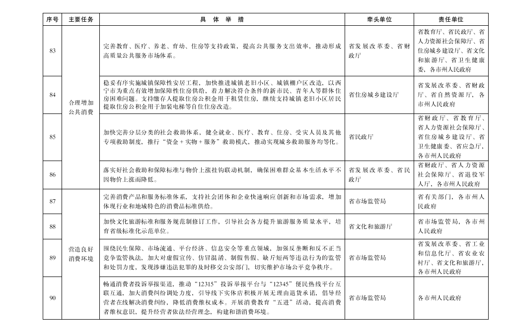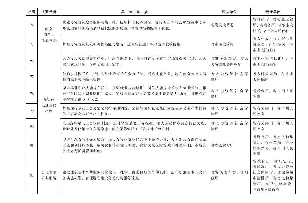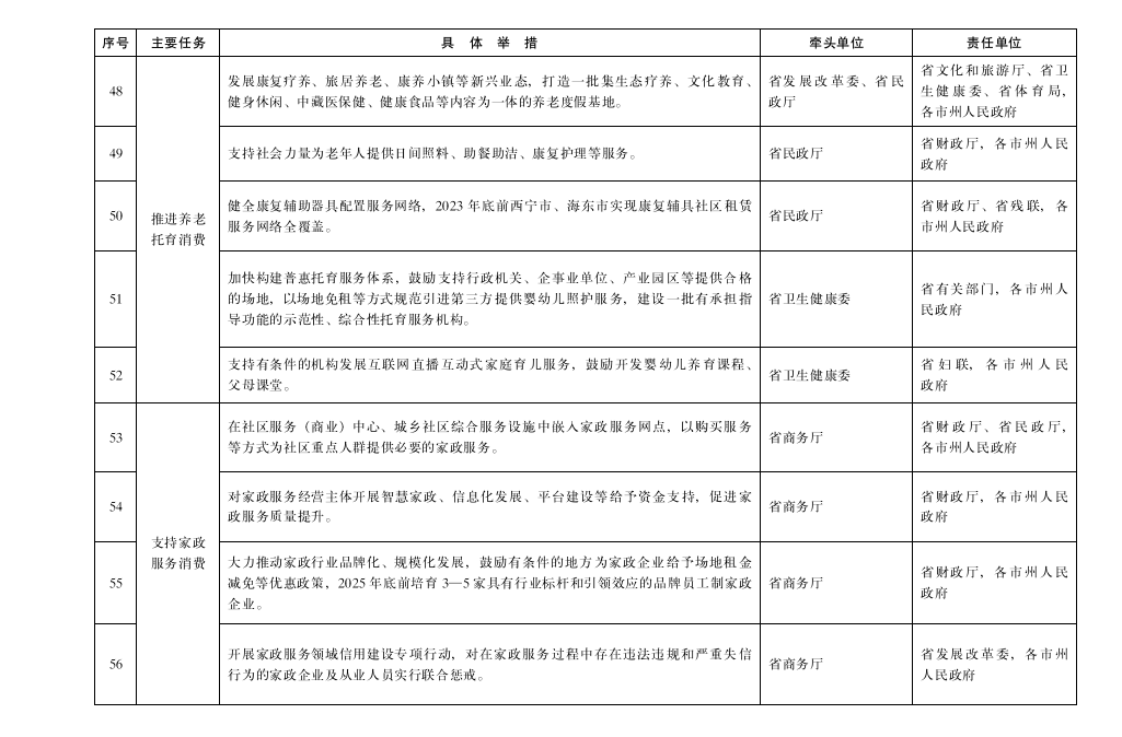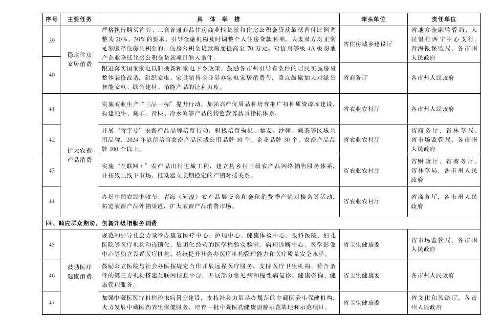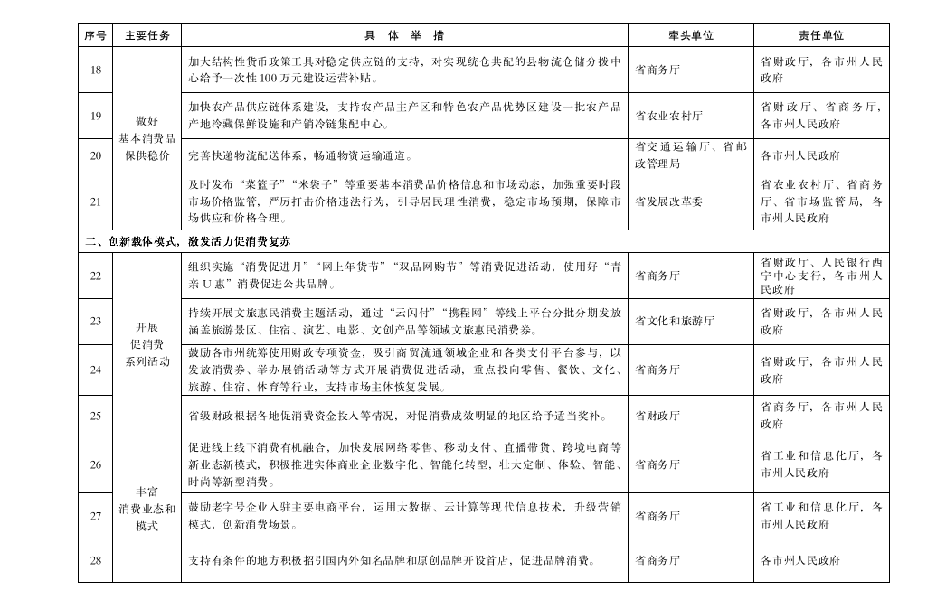 附件:《青海省促进消费持续恢复升级的若干措施》重点任务清单