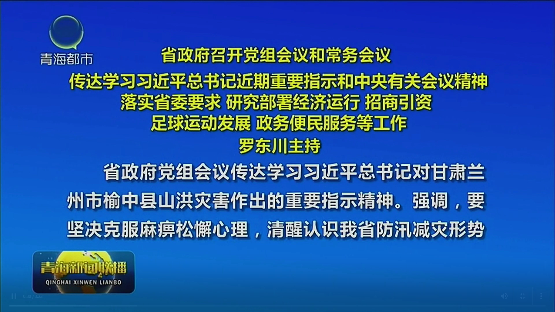 省政府党组会议传达学习习近平总书记对甘肃兰州市榆中县山洪灾害作出的重要指示精神。强调,要坚决克服麻痹松懈心理,清醒认识我省防汛减灾形势的复杂严峻性,进一步加强气象监测预警和滚动联合会商,强化风险排查和避险转移,压紧压实各级防汛责任,全力打好防汛减灾这场硬仗,确保人民群众生命财产安全。