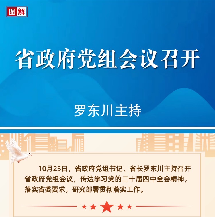 10月25日,省政府党组书记、省长罗东川主持召开省政府党组会议,传达学习党的二十届四中全会精神,落实省委要求,研究部署贯彻落实工作。