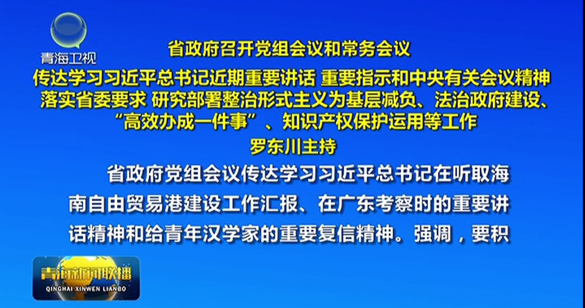 省政府党组会议传达学习习近平总书记在听取海南自由贸易港建设工作汇报、在广东考察时的重要讲话精神和给青年汉学家的重要复信精神。强调,要积极对接海南自由贸易港建设等国家重大战略,持续拓展与沿海省份产业合作,更加主动融入和服务全国大局。要以科技创新为驱动培育特色产业,推动产学研深度融合,加快构建以产业“四地”为主体的绿色低碳循环发展经济体系。要通过国际会展、青年汉学家论坛等平台讲好青海故事,支持高校与共建“一带一路”国家开展学术合作,持续提升青海文化的国际传播力、影响力。