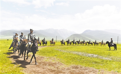 “向右转……走……”送走客人,担任值班员的赵雪超跃上马背发出一声洪亮的口令,便带着人马向草原深处的训练场奔驰而去。(洪玉杰 游之力 樊文斌)