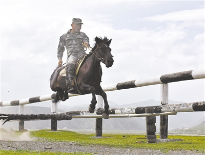 常年驻守在平均海拔4200米的雪域高原,与马共“武”9年,赵雪超的脸晒得如同黑骏马般黑亮。那鼓起的肌肉,深沉的声线,让他浑身散发着自信、勇敢和阳刚的气息。现今,赵雪超担任玉树骑兵连四班班长,兼连队骑术总教头。