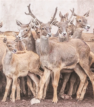 当饲养员将栅栏门打开,几十只白唇鹿陆续进入了四五百平方米的鹿场当中,在几只公鹿的带领下,群鹿围着鹿场来回跑圈,横冲直撞,特别有精神。一切准备好后,四名饲养员手中各自拿着一根长约一米的铁管,前面插着针头,准备捉到后再打麻醉针。不料,这些白唇鹿强壮、敏捷,吹管一次又一次脱“靶”,给捕捉工作带来不小难度。前后用了两个多小时,四只白唇鹿才先后“中箭”。