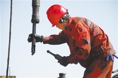 签上一份责任书,记者走进修井现场。除了轰鸣的机械声,就剩下仔细辨别才能听清的“起!”“落!”指挥声。两个钻台工、一个司钻、一个井架工,一个班长,每一人手下都是那样熟练,面对这些“铁疙瘩”,容不得一丝马虎,更顾不上跟我们交谈。