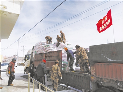 “见到民兵,见到军装,心里总会变得温暖起来,渡过难关的信心总会更加坚定一些。”提起雪野里身着迷彩服的队伍,当地群众总是赞不绝口。称多县是这次雪灾中受灾较严重的地区之一,积雪面积上万平方公里,7个乡(镇)均遭受不同程度的冰雪灾害。