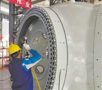 远景能源海南州有限公司工人正在组装风机整机产品。 栾雨嘉 宋明慧 摄