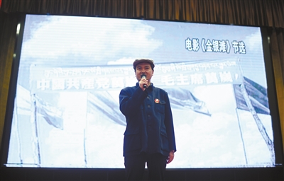 音乐、灯光、布景一切就绪,党课拉开帷幕。故事一环扣着一环,情节一幕压着一幕,筑路大军劈山造路挺进唐古拉山口。面对高原雄浑的风和终年不化的积雪,“慕生忠将军”挥动起大锤,和身边的筑路工人相互鼓劲:“死,也要头朝拉萨!”现场300名观众屏气凝神,不少人眼眶泛红。