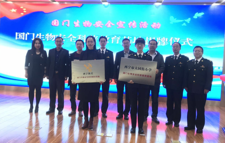 西宁海关和西宁市城中区教育局、城中区科技文体旅游局的代表共同揭牌;正式向大同街小学颁发了“国门生物安全教育科普基地”标牌,大同街小学成为青海省首家国门生物安全教育科普基地。