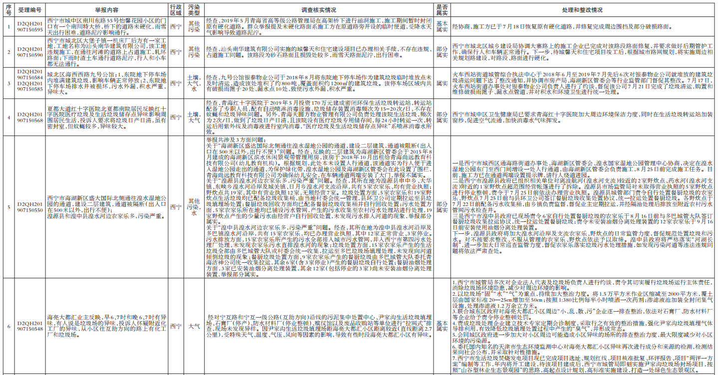 中央环境保护督查边督边改 第1批公开信息