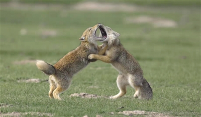 鲍永清说,《生死对决》的拍摄地点位于祁连山国家公园青海片区天峻县境内,照片中两只动物分别是藏狐和喜马拉雅旱獭,都是青藏高原上的特有物种。
