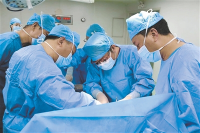 董家鸿给包虫病患者做手术。(青海大学附属医院供图)
