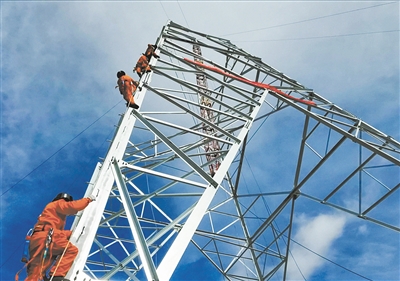 施工人员登塔准备高空作业。魏雅琪 邹建华摄