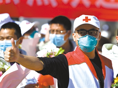 经历与时间赛跑、与病魔较量的数十个日日夜夜,青海省第一批支援湖北医疗队和青海省红十字会赴武汉救护转运队完成使命,19日飞抵西宁。“湖北首次新增确诊病例数为零”这则消息,成为当日送给白衣天使的最好礼物。