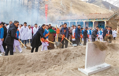 玉树藏族自治州第四人民医院建设项目开工奠基。玉树州委宣传部提供