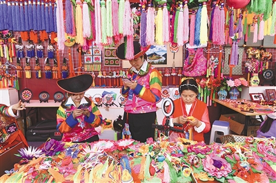 荷包寄托着美好的祝愿,粽香散发着端午的味道。在粽叶飘香体验区,不仅可以品尝购买各种口味的粽子、精美的糕点,还能看到专业师傅现场授艺,教市民包粽子。“这个好,这个实用,学会了以后就不用为包粽子发愁了。”市民朱青边向师傅请教包粽子的“秘诀”,边在师傅的指导下包好了一个品相还不错的粽子。朱青拿着这个“成功”了的粽子特别高兴:“没想到今天还学了绝招,以后包粽子再也不用‘五花大绑了’。”现场的群众都笑了。