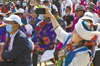 身着民族服装的群众记录精彩时刻。(祁国彪 摄)