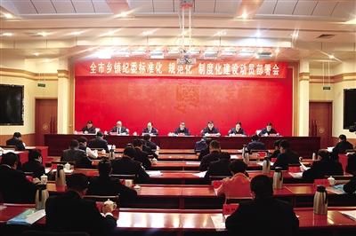 截至目前全市94个乡镇完成纪检队伍人员配备,其中包括纪委书记1名、纪检专干1—2名,兼职委员2-4名,配齐村务监督委员会主任(村级监察联络员)1名。按照乡镇三级划分标准,在18个一类乡镇配置12类基础设施,52个二类乡镇配备10类基础设施,24个三类乡镇配备6类基础设施。围绕乡镇纪委、监察办公室职能职责、工作规则、管理办法等,各县区纪委监委明确乡镇纪委书记、监察专员和纪检监察干部岗位职责,厘清乡镇纪检监察职能,做到统一规范、制度上墙。