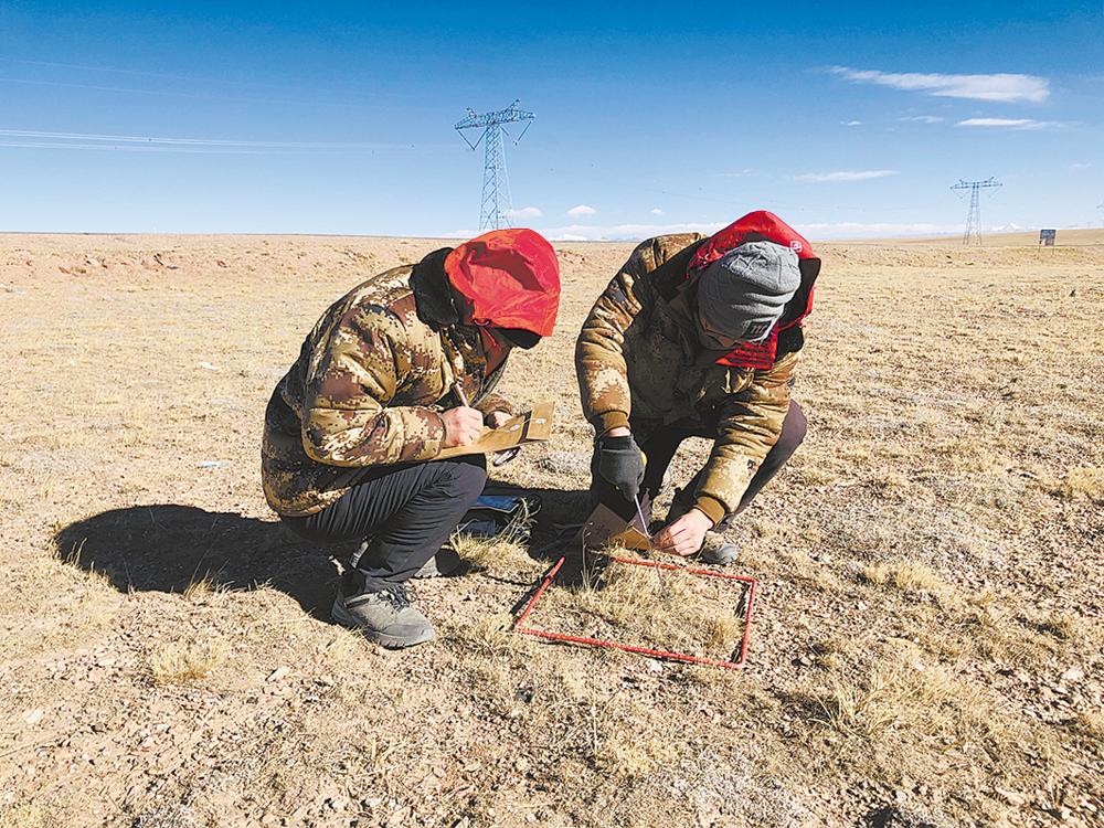 在另一块平整的草地上,中科院西北高原生物研究所的贺福全和同伴正在采集植被样本。贺福全说,他们的主要目标是了解这个区域草的长势情况,并将植被样本带回实验室进行分析,针对这块草地的承载能力,测量草地产量,给直升机和无人机做地面验证工作。