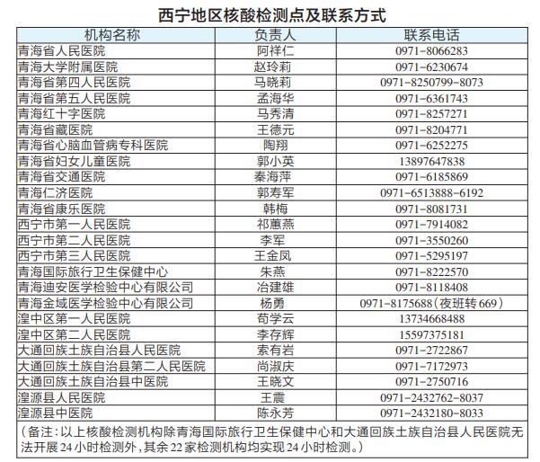 10月28日,记者了解到,目前,西宁地区共有24家医疗机构和第三方检测机构提供核酸检测采样服务。其中,22家医疗机构和第三方检测机构能够提供24小时采样服务。