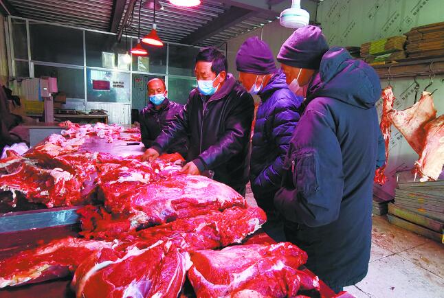 “青海的牛羊肉已经不单单是人们餐桌上的美食,精美包装后更是一份充满浓郁高原特色的礼品。”2022年元旦前后,记者来到青海三江畜产品交易市场一家牛羊肉销售店看到,货架上挂满了当天刚屠宰的新鲜牛羊肉,前来购买牛羊肉的人络绎不绝,许多市民正在询问牛羊肉的价格,准备给内地的亲朋好友邮寄牛羊肉。