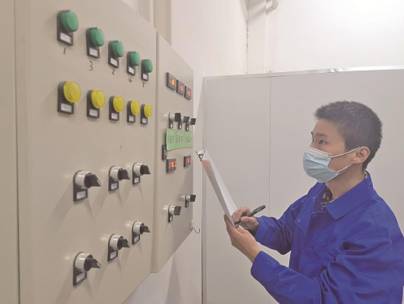 青海新铠实业有限公司工作人员检查设备运行情况。 (图片由受访单位提供)